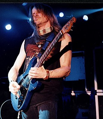 SM: There's always something crazy going on [let me think...] We finished our last tour in Korea, there was a typhoon coming in, and Dream Theater was playing before us there. They pretty much got to do their set, and when we began playing it was starting to rain. And the rain was coming in sideways, so we were in the rain - playing. And we kept playing.... And the drums, every time he hit, we'd see just sheets of water come off the heads of the drums, and Jon would slide his hand up and down the keys when he was playing his solos you could see a rooster-tail of water. My guitar stopped working, I had to switch to another guitar, because it'd just literally like totally shorted out. And the same thing happened with Roger's. We had my pedal board covered in plastic, as if that was going to do any good. but it was real slippery, and I was slipping trying to move the pedals and everything, and Ian was just out there singing and getting soaked, and he was happy, because he loves stuff like that. We kept playing until our equipment wouldn't work any more. We used up all the guitars; they all got shorted out. The only drag was because it was the last day of the tour, everything immediately got thrown into boxes, shipping cartons - as it's raining, this typhoon, and it got shipped on a boat for like a month - totally wet, so everything got ruined. And then shifting channels to a gig recently... We're playing somewhere in Switzerland, we get there, and ride up this incline - railroad, for like a mile and a half, and it's snowing! And the only problem is it's an outdoor gig! So we're playing in the snow. [Ha ha..] It was just so bizarre. And the dressing room, which was the little station where the trains come and they work on them and put grease on the wheels and stuff - that was the dressing room. The snow was too deep to walk to the stage, and we just had like regular clothes on, we weren't dressed for the outdoors. They had one of those one of those big snow caps that they use in ski resorts bring us from the "dressing room" to the "stage", and the stage was just a wooden platform with plastic around it [ha ha ha]. And the snow's blowing in our faces and you can't feel your fingers ... it was just so bizarre! So we do some weird gigs.